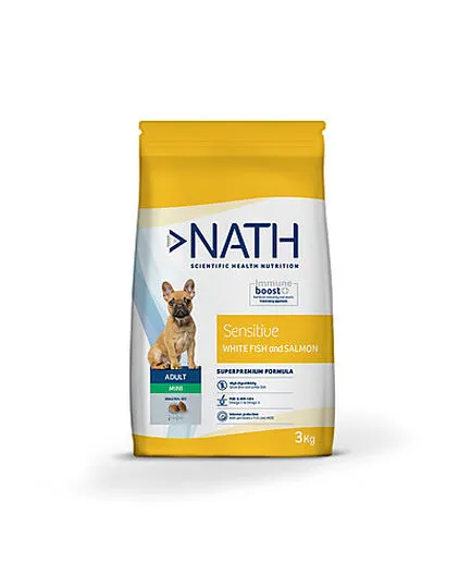 Aliment complet et équilibré pour chien adulte sensible de petite race, sans céréales pour réduire les risques d’allergies. Cet aliment pour chien de Nath couvre tous les besoins nutritionnels souffrant d’allergies.