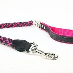 Yogipet – Laisse En Cuir Tressé 120cm Pour Chien – Noir/Rose